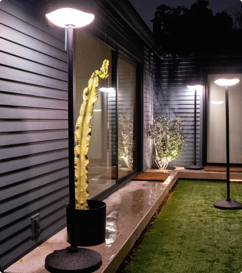 No wires. No wires. No wires. Easily move light and sound all around your backyard and beyond.